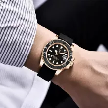 This watch is powered by a reliable Japanese mechanical movement, ensuring precise timekeeping without the need for batteries. Its water resistance up to 10 Bar means you can wear it confidently while swimming, showering, or facing the elements. With luminous hands and markers, time is always visible—even in low light. A secure screw-down crown, soft rubber strap, and comfortable hook buckle clasp ensure it feels as good as it looks.