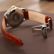 Built to last, this watch features a 40mm stainless steel case with a polished finish, matched with a sleek 0.41-inch (10.5mm) slim profile. The sapphire crystal glass ensures exceptional scratch resistance while keeping the dial crystal clear. A genuine leather strap with a 0.78-inch (20mm) width provides both comfort and elegance, while the lightweight 2.5 oz (70g) design ensures easy wear all day long.