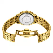 At the heart of this watch lies a Japanese quartz movement, ensuring accurate timekeeping you can rely on. The mineral glass with sapphire coating provides exceptional scratch resistance, keeping the golden glow pristine for years. Its slim 0.32 in. case thickness and sleek rectangular profile make it elegant yet comfortable for all-day wear. The IP-plated stainless-steel case and bracelet are paired with a butterfly clasp for a secure and seamless fit, adding to its sophisticated appeal.