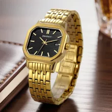 - Refined Design: Unique rectangular golden dial for a modern yet classic look.