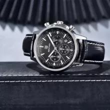 What makes this watch special? The combination of a timeless design with cutting-edge features. The leather strap offers a premium feel, while the chronograph, luminous hands, and multiple time zones make it a highly functional companion. The sturdy stainless steel case and anti-magnetic properties ensure durability and reliability, while the water resistance depth of 5Bar means you can wear it during everyday activities without worry.