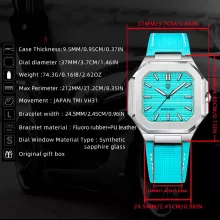 Unlike ordinary timepieces, this watch combines elegance, sportiness, and advanced functionality in one sleek package. Its unique square case sets it apart from traditional round watches, while the silicone band adds a modern, comfortable touch. The luminous hands and scratch-resistant sapphire crystal make it practical for all-day wear, from daytime activities to evening outings. It’s more than just a watch—it’s a statement of style, precision, and confidence.