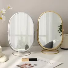 This elegant tabletop mirror combines functionality with timeless style. Its iron frame ensures durability and stability, while the oval shape adds a touch of sophistication to any space. With high-definition glass, every detail of your look is displayed with precision—ideal for applying makeup, grooming, or skincare routines.
