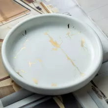 Luxury Round Marbled Ceramic Soap Dish. This beautifully crafted accessory is not just a soap dish; it’s a statement piece that combines practicality with artistic design. The luxurious gilded marbled finish adds a unique touch, making it an exquisite addition to any decor while efficiently holding your soap and sponges.