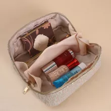This bag is more than just a pretty accessory—it’s a smart solution for organizing your daily beauty routine and travel essentials. The large capacity fits everything from foundation and lipstick to perfume and skincare, while the sturdy zipper keeps items secure. Whether you’re getting ready for a business trip, vacation, camping adventure, or just organizing your bathroom, it keeps your must-haves neat and protected.