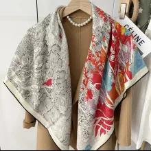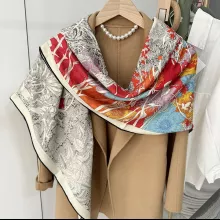 What sets this scarf apart is its exquisite craftsmanship and luxurious feel. The combination of silk and wool creates a unique texture that is both soft to the touch and warm against your skin. The natural print design reflects a sense of style and elegance that makes a statement without being overpowering. This scarf is not just an accessory; it’s a versatile piece that enhances your wardrobe and expresses your unique style.