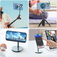 What sets this smartphone stand apart is its innovative magnetic connection combined with a fully adjustable ball head. Unlike traditional stands, it offers flexibility in orientation without sacrificing stability. It is ideal for work-from-home setups, online meetings, video streaming, or even tabletop photography. The magnetic hold ensures your phone stays safe while giving you a sleek, clutter-free workspace.