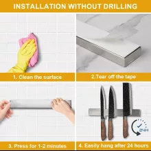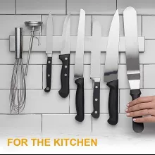 Built with powerful neodymium magnets, this heavy-duty knife holder keeps your knives firmly in place, ensuring they stay secure and accessible at all times. The strong magnetic pull holds even the largest chef’s knives safely, while allowing you to grab what you need with ease. Whether you’re prepping dinner or cleaning up after a feast, this knife strip ensures your tools are always organized and ready for use.
