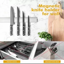 Upgrade your kitchen organization with the Magnetic Knife Holder Wall Mount — a sleek, modern, and space-saving way to keep your knives and utensils within easy reach. Crafted from premium stainless steel, this durable magnetic strip offers a clean and elegant look that complements any kitchen décor, whether modern, rustic, or traditional. Say goodbye to bulky knife blocks and cluttered drawers—this magnetic rack brings both function and beauty to your cooking space.