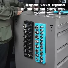 This organizer is crafted to handle heavy-duty use while maintaining a clean and clutter-free workspace. With powerful magnetic backing, it holds sockets firmly in place, preventing them from rolling, tipping, or disappearing into the depths of your toolbox. Its compact design saves space while still offering plenty of storage capacity. Whether you’re a DIY enthusiast or a seasoned mechanic, this socket holder ensures your tools are always where you expect them to be.