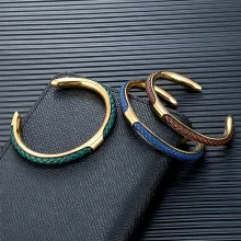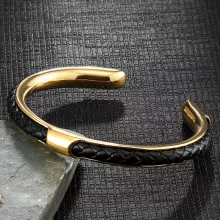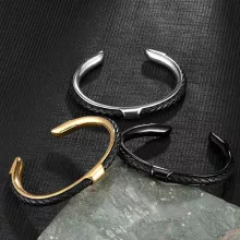 Discover the perfect blend of rugged sophistication and modern design with this stainless steel woven leather cuff bracelet for men. Crafted to complement any look, from casual to sharp business attire, this bracelet is a versatile accessory that adds a touch of boldness and refinement to your everyday style. The woven leather detail wrapped in durable stainless steel creates a unique texture that stands out without overwhelming your wrist.