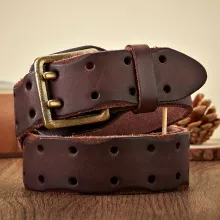 Upgrade your everyday look with this vintage-inspired genuine leather belt, crafted for men who appreciate timeless design and dependable quality. Made from thick, full-grain cowhide, this belt is built to last while delivering the perfect blend of ruggedness and sophistication. Whether you’re dressing for a day at work or gearing up for a night out, this wide leather belt with a sturdy double prong buckle makes a bold statement.