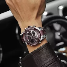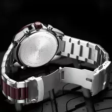 This multi-function timepiece offers more than just good looks. Its luminous display ensures you can check the time even in the dark, while the dual time display keeps you on schedule across time zones. A built-in chronograph, alarm, and complete calendar add to its practicality, making it a reliable companion for sports, travel, and everyday wear. Plus, its 30M water resistance means you can take on rain, splashes, and even quick rinses without worry.