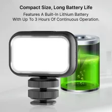 Despite its small size, this light packs a powerful punch. Equipped with 28 high-brightness LEDs, it achieves a high CRI of 95+, ensuring colors are vibrant and true-to-life. Its built-in soft diffuser creates a gentle, even glow that reduces harsh shadows, making it ideal for beauty shots, product photography, and cinematic video recording. The mini design allows you to shoot without limitations, whether on the go or in tight spaces.