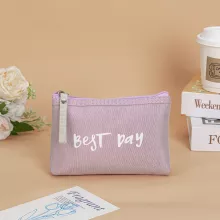 This pouch combines simple design with everyday functionality. Featuring a reliable zipper closure, it keeps your makeup, pens, ID cards, and other small belongings safely stored. Measuring approximately 3 inches in width, it’s compact yet spacious enough to handle all your must-haves without taking up too much room.