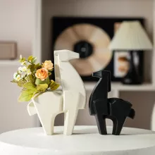 Introducing a unique blend of functionality and contemporary art: the Minimalist Geometric Horse Ceramic Sculpture. This beautifully crafted figurine is not only an abstract animal sculpture, but also doubles as a modern vase for dried flowers, bringing a charming touch of whimsy to any room. With its geometric design, it’s a stunning way to elevate your home decor while adding a practical element that’s perfect for arranging dried flowers or greenery. Whether displayed on a shelf, desk, or mantle, it’s sure to become a conversation piece in any space.