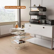 What sets this table apart is its combination of modern style and practicality. The transparent design creates an illusion of space, making rooms feel larger and brighter. Its integrated storage solution is not just functional but also keeps your space clutter-free and elegant. This side table complements a wide range of décor styles, from minimalist to classic European and American interiors.