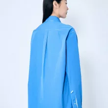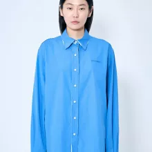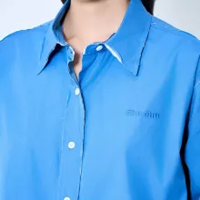 This shirt is more than just a garment; it’s a piece of art. The classic collar gives it a timeless appeal, while the front button closure allows for an adjustable, tailored fit. The double-layer design adds a touch of modern sophistication, creating a dynamic look that sets you apart from the crowd. To top it off, Miu Miu’s iconic logo is delicately sewn onto the front, providing a subtle yet distinctive detail that reflects the brand’s legacy of elegance and class.