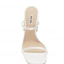 Elevate your footwear collection with these stunning Miu Miu Mixed Silk Sandals, designed to make a statement wherever you go. The soft white color and square toe create a modern and sophisticated silhouette, while the open front adds a touch of effortless charm. The silk micro strap on the front is delicately edged, offering a refined look, and the glitter-covered block heel provides just the right amount of sparkle to turn heads. Crafted from 100% premium leather, these sandals are as luxurious as they are comfortable, ensuring you stand out with every step you take.