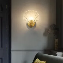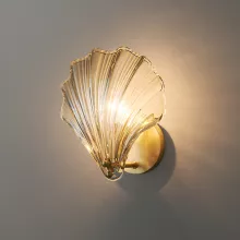 Add a touch of sophistication to your walls with this stunning brass shell sconce. Choose your preferred glass color, install it with ease, and let its glow transform your evenings. Order yours today and experience modern luxury lighting at its finest.