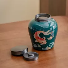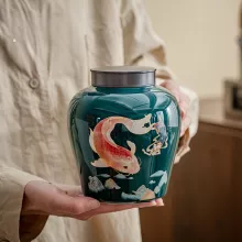 This decorative jar brings calm and charm into your living space. Whether placed on a bookshelf, sideboard, or tea station, it captures attention with its modern elegance and soft color palette. It’s not only a practical storage solution but also a stunning ornament that enhances your home’s aesthetic. Use it during daily tea rituals or as a decorative accent during gatherings—it’s designed to impress in any setting.
