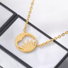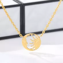 This beautiful necklace features a crescent moon and sun pendant, symbolizing balance, harmony, and the duality of life. The coin-shaped pendant is intricately designed, showcasing the delicate details of the celestial bodies, making it a standout piece in any jewelry collection.