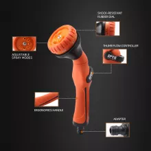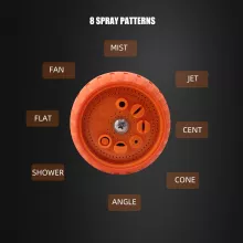 - 8 Versatile Watering Options: Select from a gentle mist to a powerful jet stream with the twist of a dial. Perfect for light watering, heavy-duty cleaning, or even a refreshing outdoor shower.