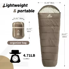 Whether you’re camping in the snowy mountains, trekking through autumn trails, or enjoying a cool summer night under the stars, this sleeping bag adapts to the season. Its 4-season versatility means you can rely on it for spring freshness, summer comfort, autumn chill, and winter frost. The mummy-style design with an adjustable hood keeps cold air out, making it a trusted choice for any outdoor enthusiast.
