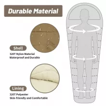 When the temperatures drop, your comfort shouldn’t. This mummy sleeping bag is designed to keep you warm, cozy, and well-rested even in extreme conditions down to -12°F. With its lengthened size for heights up to 6.5 ft, this sleeping bag wraps you in comfort from head to toe, ensuring a snug fit that retains body heat while giving you enough space to move. Its durable nylon shell resists wind and moisture, while the soft cotton filling delivers excellent insulation without feeling bulky.