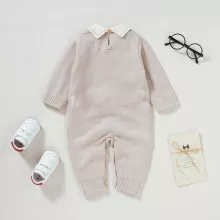 Wrap your little one in pure comfort with this 100% cotton knit newborn romper. Designed for infants and toddlers from 0 to 12 months, this one-piece outfit brings together cozy softness and timeless style. The breathable knit fabric keeps your baby comfortable all day, while the gentle stretch allows freedom of movement during play, naps, and snuggles. Its solid color and classic turn-down collar make it a perfect choice for both casual days at home and special outings.