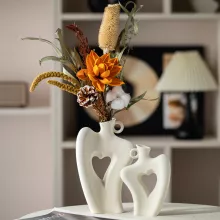 Discover the perfect fusion of art and decor with our Nordic Abstract Heart Hollow Female Body Vase. This stunning matte ceramic sculpture features a graceful female form, celebrating both modern minimalist design and the beauty of emotion. The central heart-shaped cutout is a striking detail, adding charm and romanticism to any room. Whether displayed as a statement piece in your living room or as a thoughtful gift, this vase transforms any space into a celebration of art and femininity.