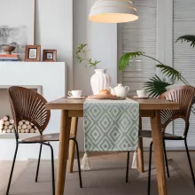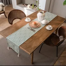 Bring a touch of Scandinavian charm to your home with the Nordic Geometric Jacquard Table Runner with Tassels. Crafted from a premium polyester-cotton blend, this table runner combines timeless style with everyday practicality. The intricate jacquard geometric pattern adds depth and texture, creating a sophisticated accent that enhances any dining table, coffee table, or console. Perfect for both casual gatherings and elegant dinner parties, it effortlessly ties together your home décor with understated elegance.