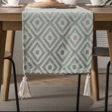 Nordic Geometric Jacquard Table Runner with Tassels – Elegant Dining Decor