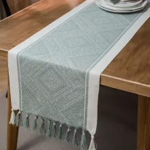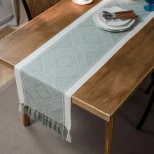 Transform your dining experience with this stunning Nordic Geometric Jacquard Table Runner. Designed with a blend of timeless craftsmanship and modern style, this table runner instantly adds a touch of sophistication to any space. Its intricate geometric jacquard pattern and elegant tassel accents bring a cozy yet refined Nordic charm to your dining table, sideboard, or coffee table.