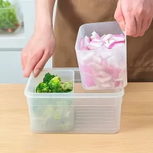 The compact and modern design makes it a must-have for any busy kitchen. With its two detachable grids, you can easily organize your food into compartments, preventing them from mixing and spoiling. The convenient handle allows you to carry the box with ease, whether you’re taking it from the fridge or placing it on your countertop. The high-quality plastic construction ensures durability, making it a long-lasting kitchen companion.