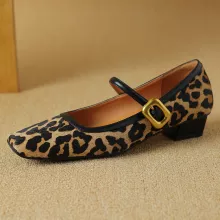 Bring a touch of wild sophistication to your everyday look with these stunning plus size leopard print Mary Jane flats. Designed for women who value both style and comfort, these elegant square-toe shoes blend high-quality craftsmanship with timeless design. The chic horsehair and cow leather upper pairs beautifully with the sleek buckle strap, making them the perfect finishing touch for both casual and dressy outfits.