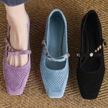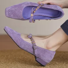 These Mary Jane flats aren’t just shoes – they’re a fashion statement. The natural suede gives them a rich texture, while the breathable hollow-out design ensures your feet stay cool. Their slim, feminine shape complements dresses, skirts, or tailored pants, making them a go-to option for both formal and casual occasions. Unlike mass-produced footwear, their handmade finish adds uniqueness and quality you’ll notice with every step.