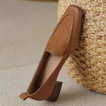Step into timeless elegance with these genuine leather slip-on flats designed for women who value both style and comfort. Crafted from soft sheepskin leather on the outside and breathable pigskin on the inside, these shoes provide a luxurious feel from the moment you slip them on. With a modern square toe design and fine hand-sewn details, they strike the perfect balance between fashion and simplicity. The 1.2 inch (3 cm) heel adds just the right amount of lift for all-day wear without sacrificing comfort.