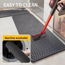 - Strong Non-Slip Rubber Backing: The rubberized backing ensures the mat stays firmly in place on tile, wood, or laminate floors, offering secure footing as you move around the kitchen.