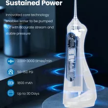 This water flosser is built with versatility and comfort in mind. The integrated light bar displays water pressure levels, allowing you to switch between four precision modes effortlessly. Its large 10–16 oz water tank ensures uninterrupted cleaning, while the rechargeable battery makes it easy to use anywhere—at home, the office, or while traveling.