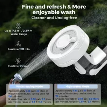 With two adjustable flow modes—2.2 liters/min for gentle rinsing and 3.0 liters/min for a faster clean—you can choose the perfect water pressure for any situation. The built-in rechargeable battery offers up to 110 minutes of use on low mode and 70 minutes on high mode. Featuring IPX7 waterproof protection, this pump is built to handle outdoor environments without worry. Simply drop the pump into a water source, switch it on, and enjoy a refreshing shower or efficient rinse anywhere.