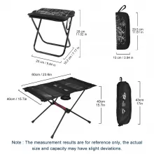 This folding table and stool are crafted with a sturdy frame and durable tabletop surface, ensuring stability even on uneven ground. The lightweight design makes it easy to carry, and the simple foldable structure allows quick setup and packing in seconds. The table measures just the right size for meals, drinks, or gear storage, while the stool provides comfortable seating for extended use. With no harmful chemicals involved in the materials, it’s a safe and eco-friendly choice for outdoor lovers.
