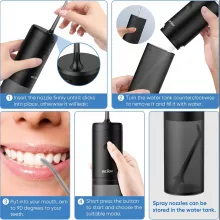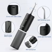 The cordless water flosser features a cleanable and removable water tank for easy hygiene and transparent visibility. With a high-frequency 1900 pulses per minute water stream and a precision 0.6mm nozzle, it removes food debris and plaque where brushing can’t reach. Three adjustable modes and three interchangeable nozzles let you customize your cleaning, whether you need a gentle touch for sensitive gums or a powerful flush for deep cleaning.