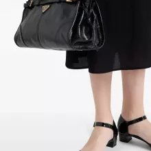 Prada has redefined footwear fashion with these unique pumps, combining functionality and aesthetics seamlessly. The adjustable round ankle strap ensures a secure, personalized fit, while the leather block heel provides stability and comfort, even for extended wear. Designed with a perfect balance of sophistication and practicality, these pumps are as versatile as they are chic.