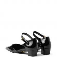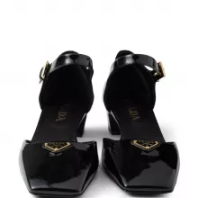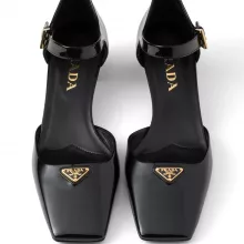 - Toe Design: Square toe embellished with the iconic enameled Prada triangular plaque.
