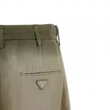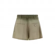 With practicality in mind, Prada ensures that these shorts are as functional as they are fashionable. The side slash pockets and back welt pockets offer convenient storage, while the concealed front button closure maintains a sleek and polished appearance. The iconic triangular plaque is a subtle yet unmistakable nod to Prada’s heritage and high-quality craftsmanship.