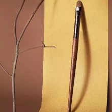 What makes this brush special? The flexible yet precise synthetic fibers allow for both delicate detailing and smooth blending. Measuring 5.5″ long with a perfectly balanced wooden handle, it gives you the control professionals demand. Unlike cheaper brushes that fray or shed, this maintains its perfect point through countless uses.
