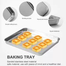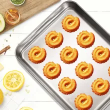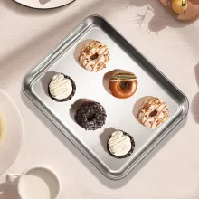 Made from premium 430 stainless steel, this baking tray is built to last. It’s completely non-toxic and free from chemical coatings, ensuring that no harmful substances ever touch your food. Unlike aluminum trays, it won’t leave metallic residue or alter the taste of your favorite dishes. Its sturdy build and moderate weight give it a solid feel that’s resistant to warping and corrosion — perfect for years of reliable use.