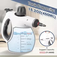 - Large 15.2OZ Water Tank: With an extra-large tank capacity, this steamer offers longer cleaning time and less refilling – up to 8-10 minutes of continuous steam power.