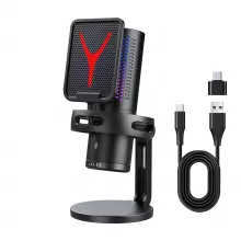 Featuring a cardioid pickup pattern, this microphone focuses on your voice while minimizing background noise, creating a clean and professional audio experience. Its RGB lighting adds a dynamic and modern touch to your setup, making it perfect for streamers who want both style and performance. The wired USB connection ensures stable and reliable sound transmission, while the compact, table-top design fits neatly on any desk without taking up much space.